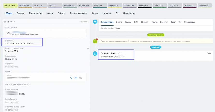 During the integration of Bitrix24 our managers have automated the processes of accepting and processing orders, as well as notifying customers. This made possible to identify the weaknesses of management in the enterprise, which were not initially in the field of view of the customer. The integration of CRM with Rozetka and Nova Poshta logistics platforms was carried out. Our team carried out work on the customization of Kanban for the warehouses: the images of goods were added to product cards, which significantly accelerated the processes of interaction between departments of the enterprise.